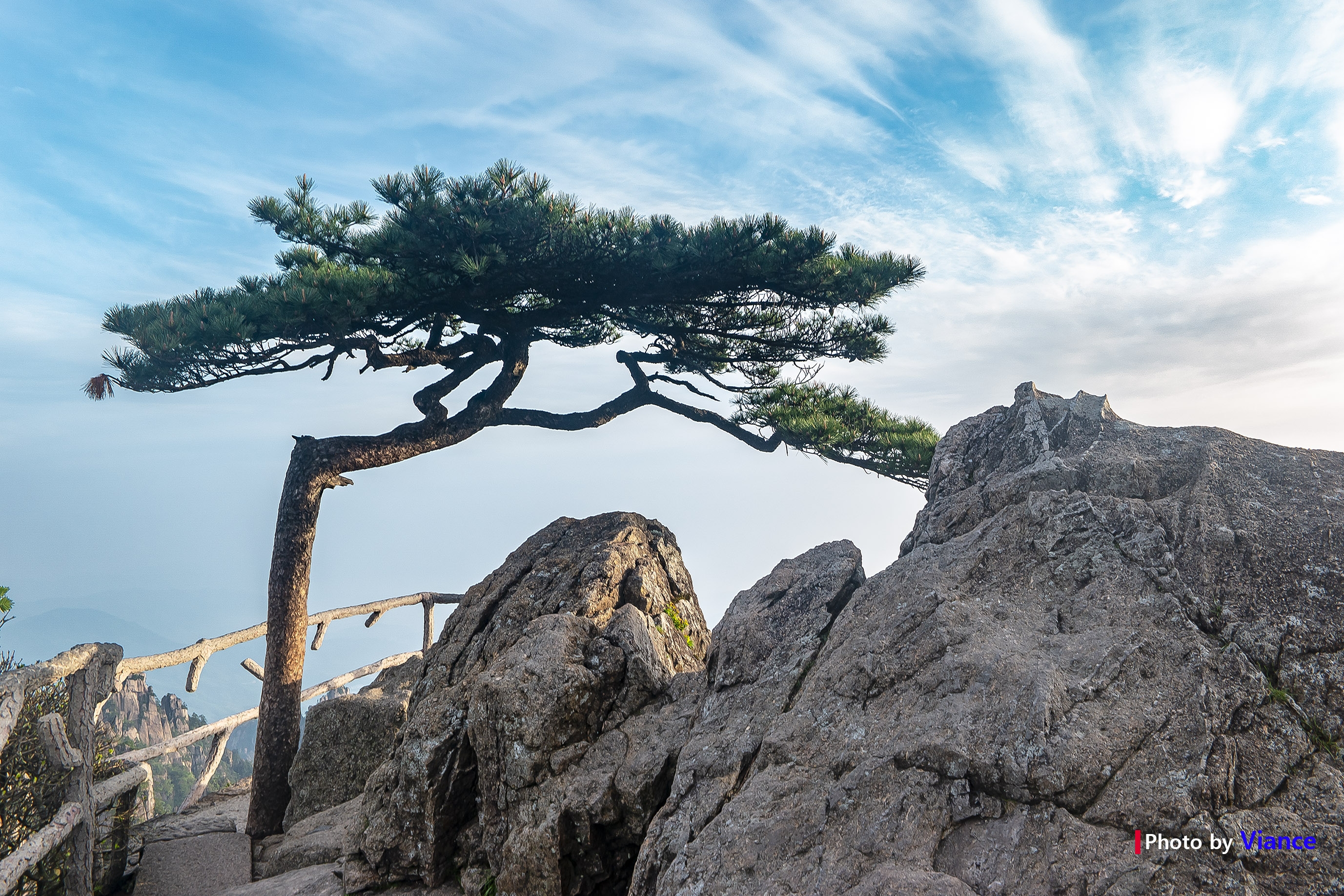 황산에는 다른 식물들도 많지만 특히 소나무들이 많은데요. 이름을 잊어버린 한 봉오리에서 돌틈사이에서 자라난 소나무입니다. 참 힘든 환경속에서 멋지게 자라 났네요