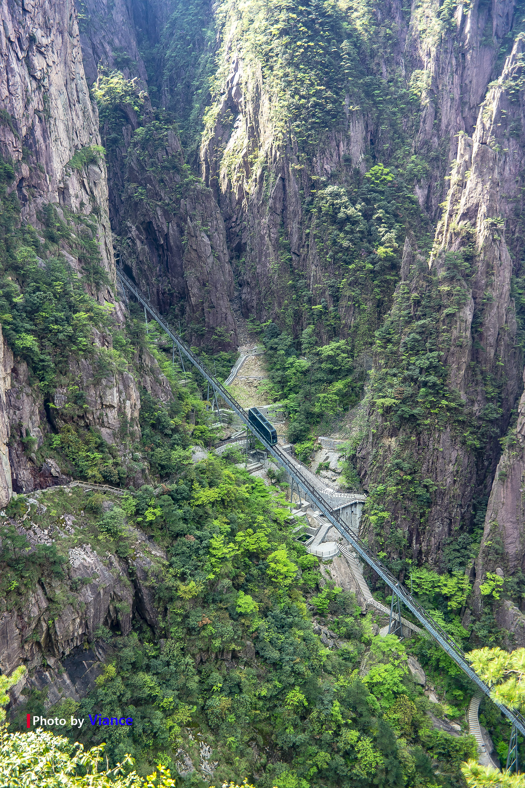 계단으로 약 1시간정도 내려가면 케이블카가 보입니다. 저걸 타고 다시 황산의 다른 루트로 올라갈 수 있습니다. 제가 갔던날이 중국의 큰 휴일중 두번째인 노동절때였기 때문에 사람이 어마 무시하게 많았습니다.