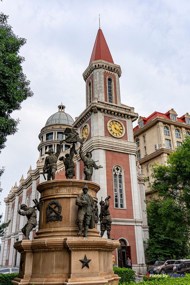 이태리 풍경구를 나와 천진의 또다른 관광지인 고문화 거리로 향하기로 합니다. 고문화 거리도 도보로 약 15분 거리에 위치해 있습니다. 가는 길에 발견한 시계탑과 공산당(?) 스러운 군인 동상입니다. 뭐... 예전 1990년대 우리나라 이곳저곳에 있던 동상같은데 이질적이었습니다. 저한테는.