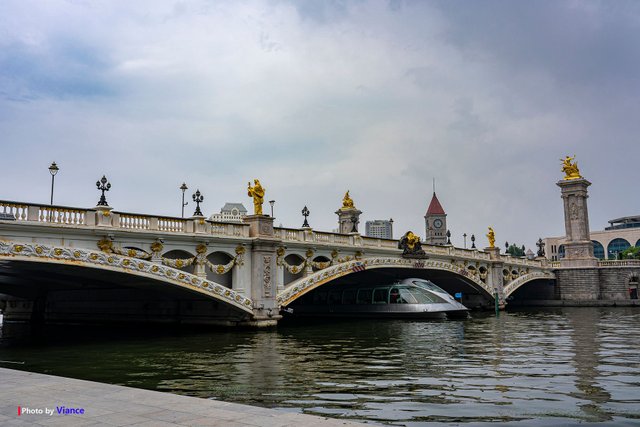 기독교와 연관된 석상, 동상도 보이는 다리로 약간은 과한 기교가 조금 과장스럽긴 하지만 그래도 나름 고풍스럽습니다. 이 다리가 해허(海河)를 가운데 두고 양쪽 지역을 연결해 주고 있습니다.
