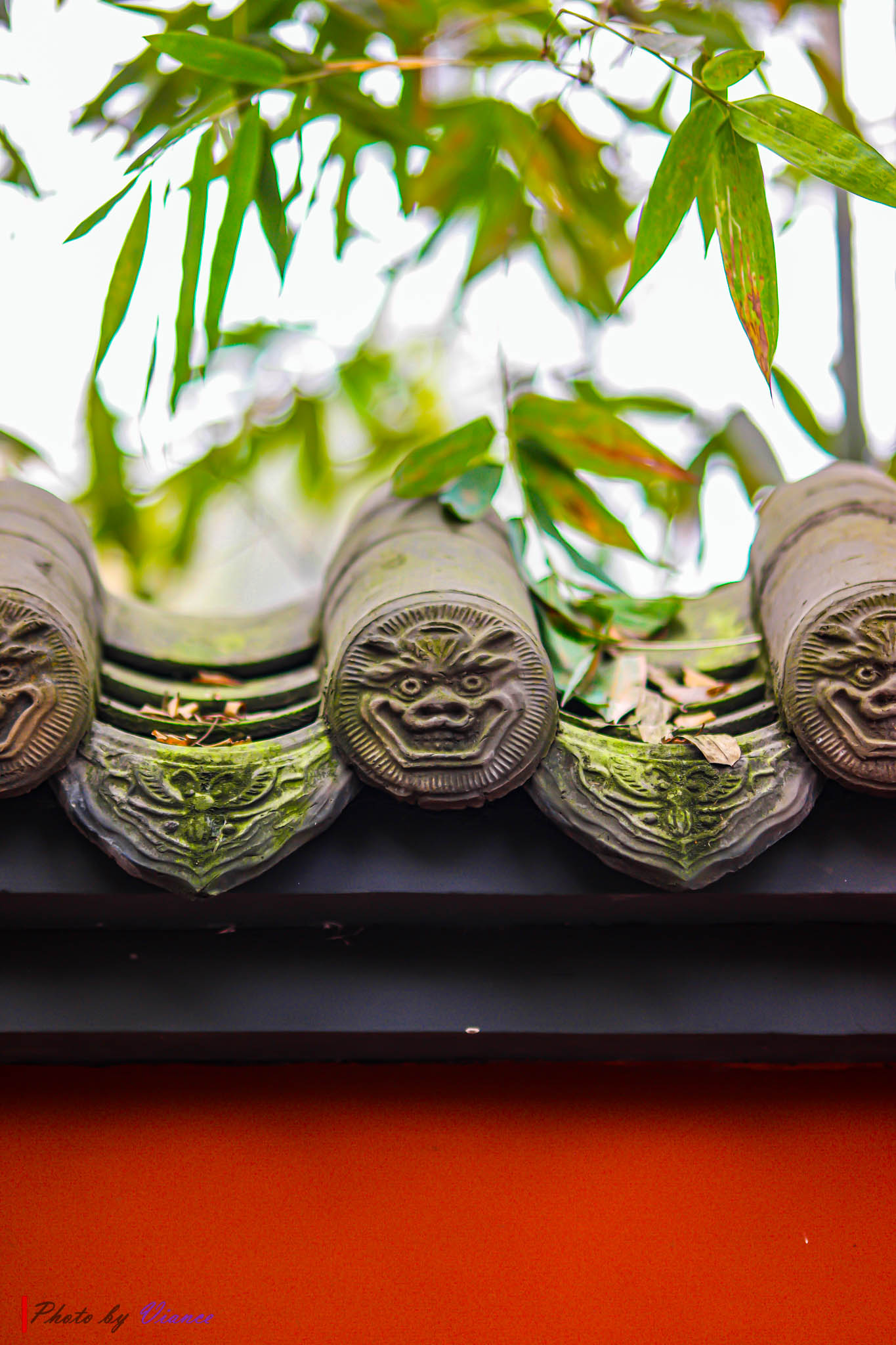 담 위로 고개를 내민 대나무가 바람을 모아 속삭인다.