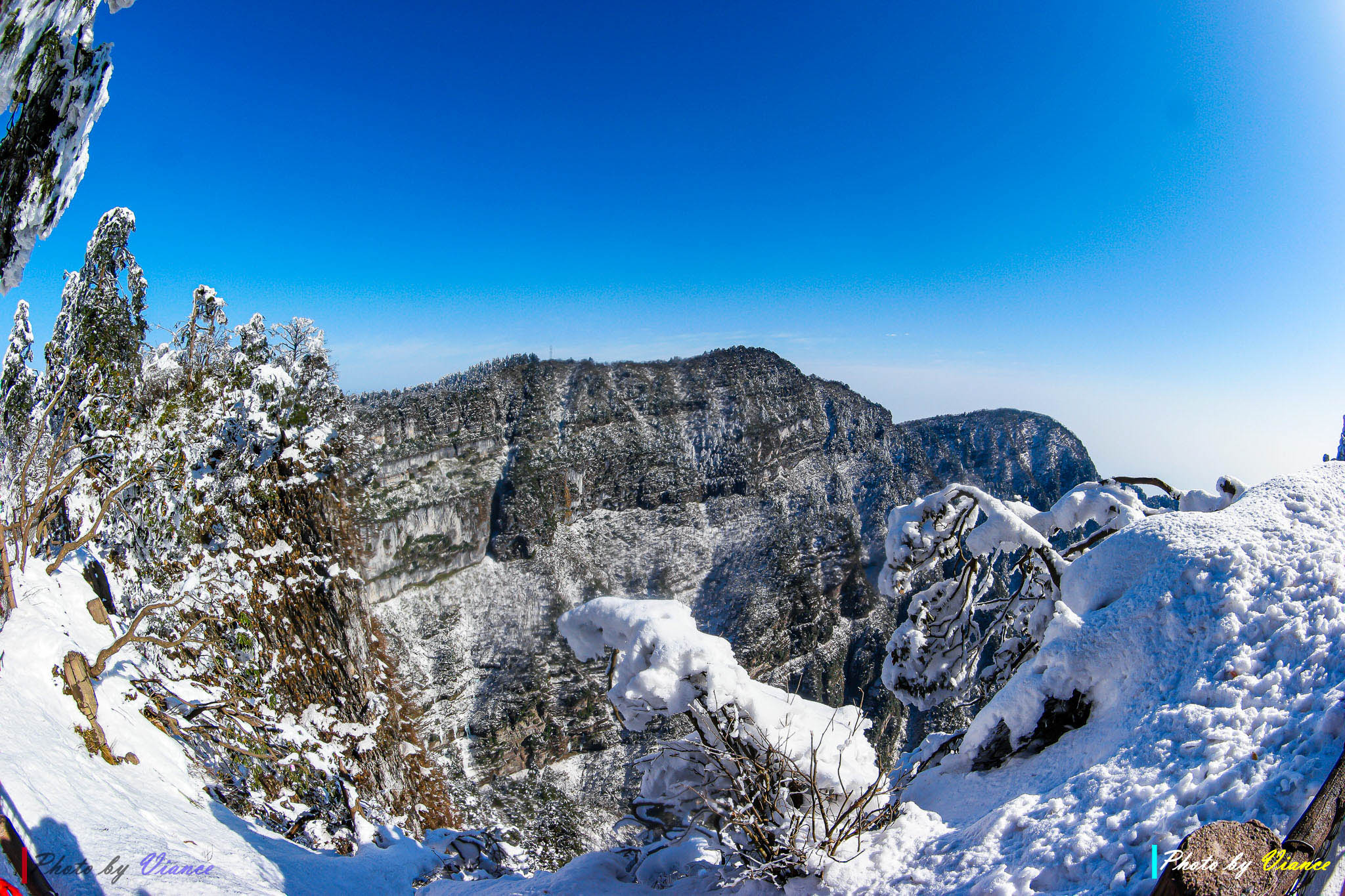 케이블카에서 내려 본격적으로 걷기 시작하자, 길은 눈과 얼음으로 반짝였습니다. 나무와 바위마다 하얗게 달라붙은 서리꽃, 난간을 따라 이어지는 좁은 설로(雪路). 발걸음이 느려질수록 풍경은 더 선명해졌습니다. 파란 하늘과 하얀 숲의 대비가 강렬해서, 셔터를 누를 때마다 겨울빛이 사진 속으로 스며들더군요.