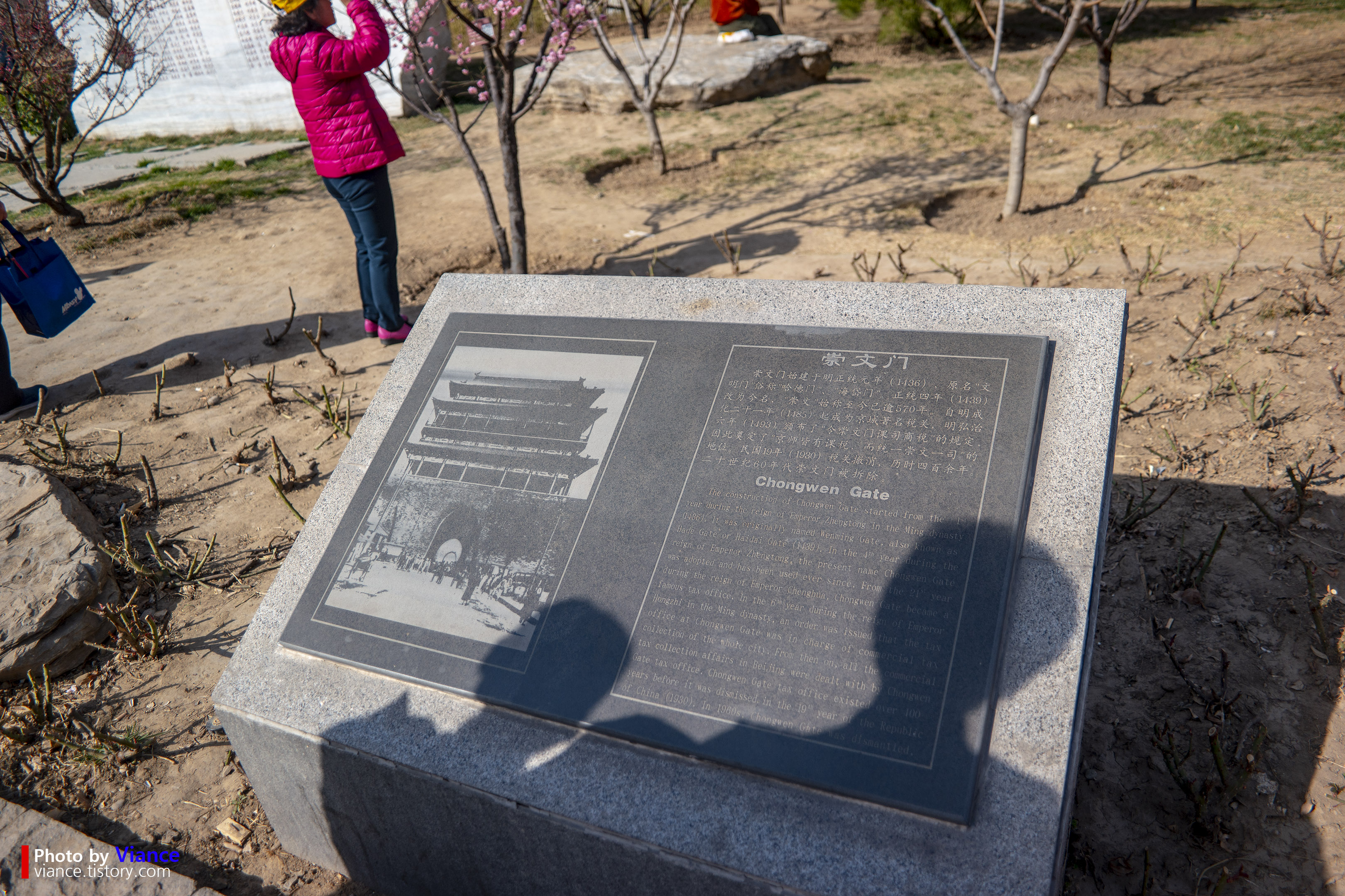 서두에도 말씀드렸뜻이 북경은 황제가 지내던 곳이었기 때문에 더 철저하게 성벽들을 둘러놓았는데 과거 전쟁과 문화 혁명으로 이제는 사진으로만 볼 수 있는 경우가 많습니다. 고증을 거쳐 재건을 하기도 하지만, 예전만큼의 느낌을 살리긴 어렵죠. 숭문문이 있던 터라는 사진만 남아있는 푯말이 조금 안타까웠습니다.